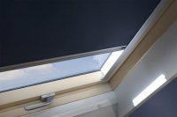 Met een ARF verduisteringsrolgordijn van FAKRO kan een ruimte volledig worden verduisterd. Zodra het rolgordijn is gesloten, valt op klaarlichte dag de nacht in. De lichtinval wordt namelijk geweerd door het materiaal, de speciale afdichting in de onderlijst en de reflecterende laag aan de achterzijde. Ook de aluminium zijgeleiders dragen bij aan het verduisteringeffect. De verduisteringsrolgordijnen zijn traploos regelbaar en aan de bovenkant afgewerkt met een aluminium lijst.