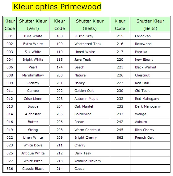 Stel je eigen shutter samen bij optie`s,