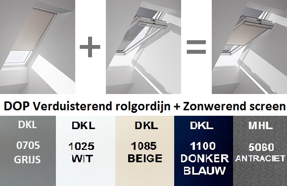 VELUX verduisterend rolgordijn DKL en Zonwerendscreen MHL = DOP voor CK01, C01 en 9